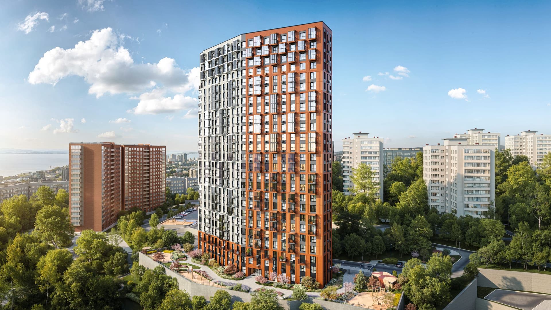 Уютный жилой комплекс с просторными окнами, открывающими виды на город и Амурский залив. Уникальный ландшафтный дизайн, закрытая территория с камерным двором в стиле японского сада обеспечивает спокойствие и безопасность. Продуманные планировки, развитая инфраструктура и лёгкий доступ к главным объектам для жизни в ритме города. Карбышева становится не просто местом для жизни, но и пространством, где семья может расти, развиваться и наслаждаться каждым днем.