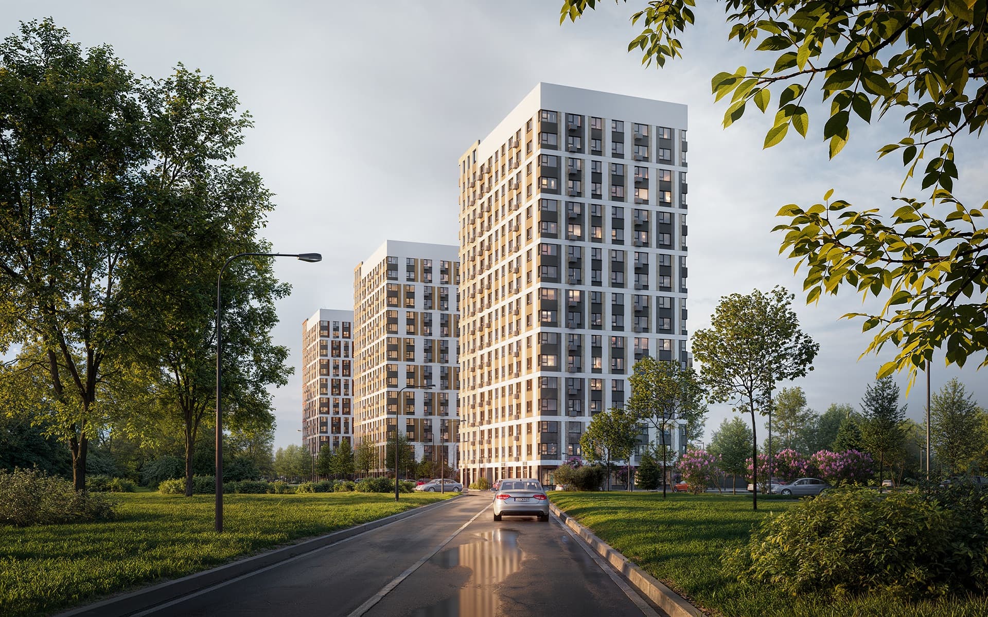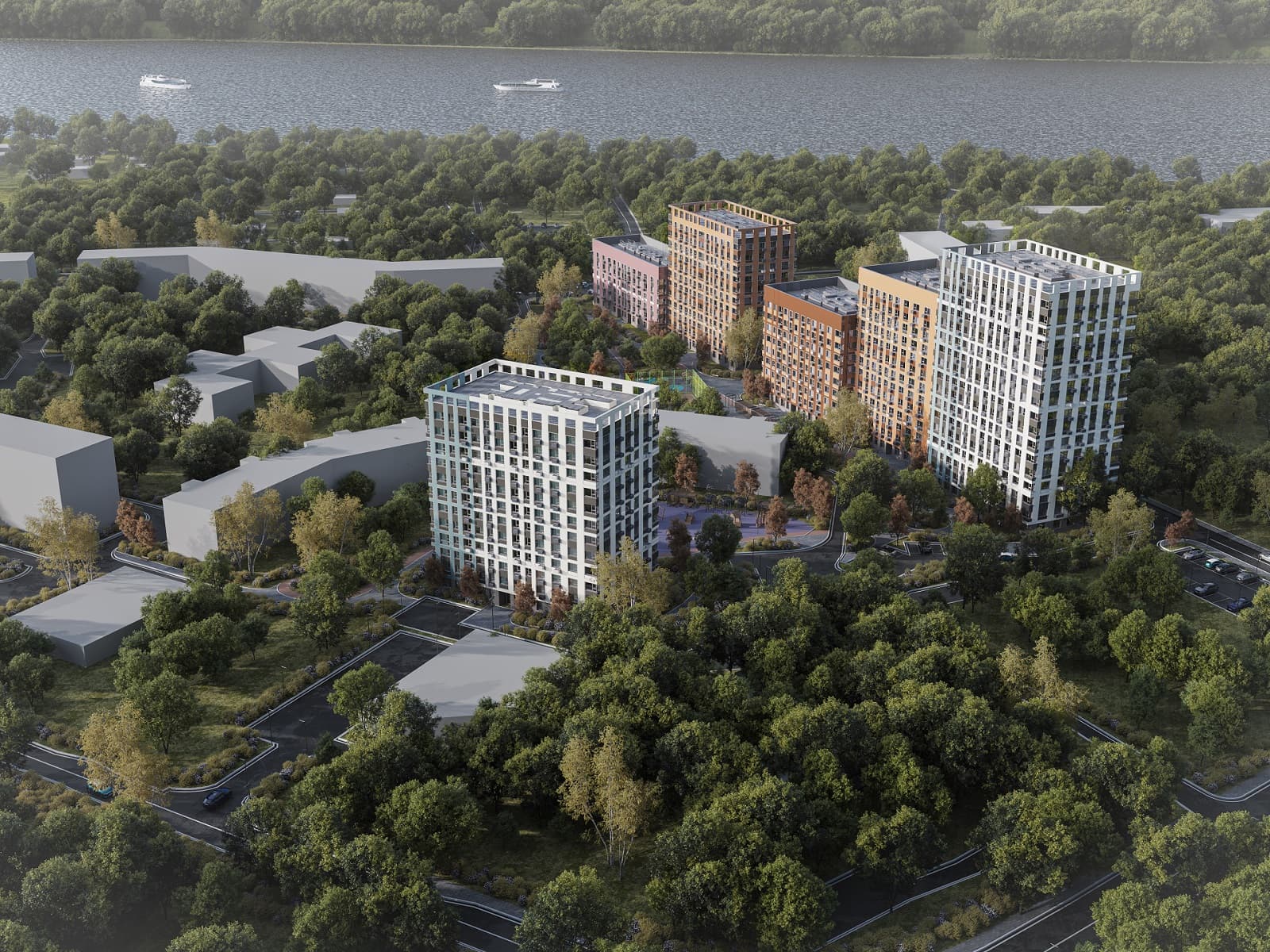 Дома расположатся недалеко от береговой линии реки Волги, в районе со сложившейся инфраструктурой — рядом с проектом уже есть детские сады, школа, поликлиника, а также скверы и парки.