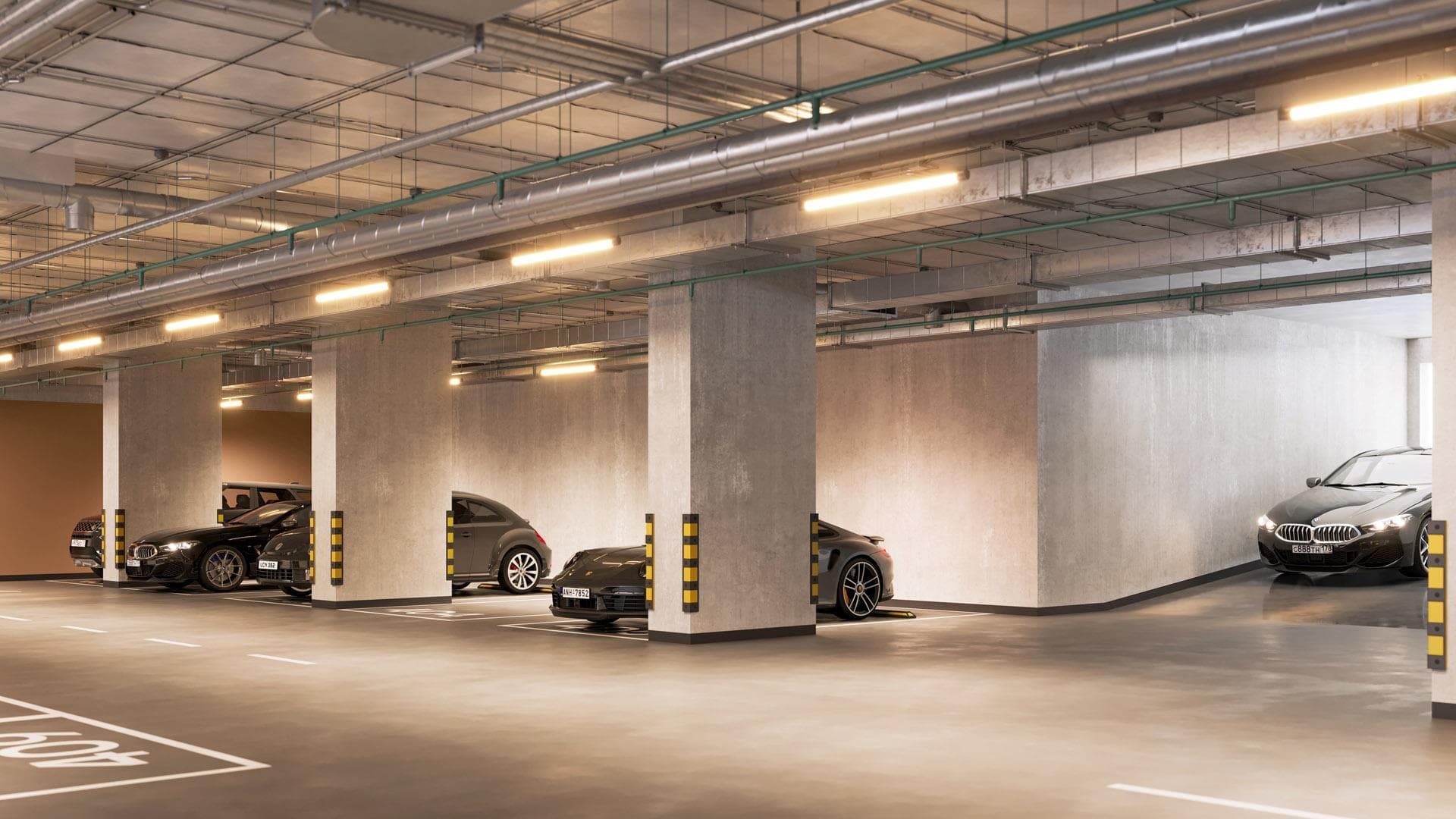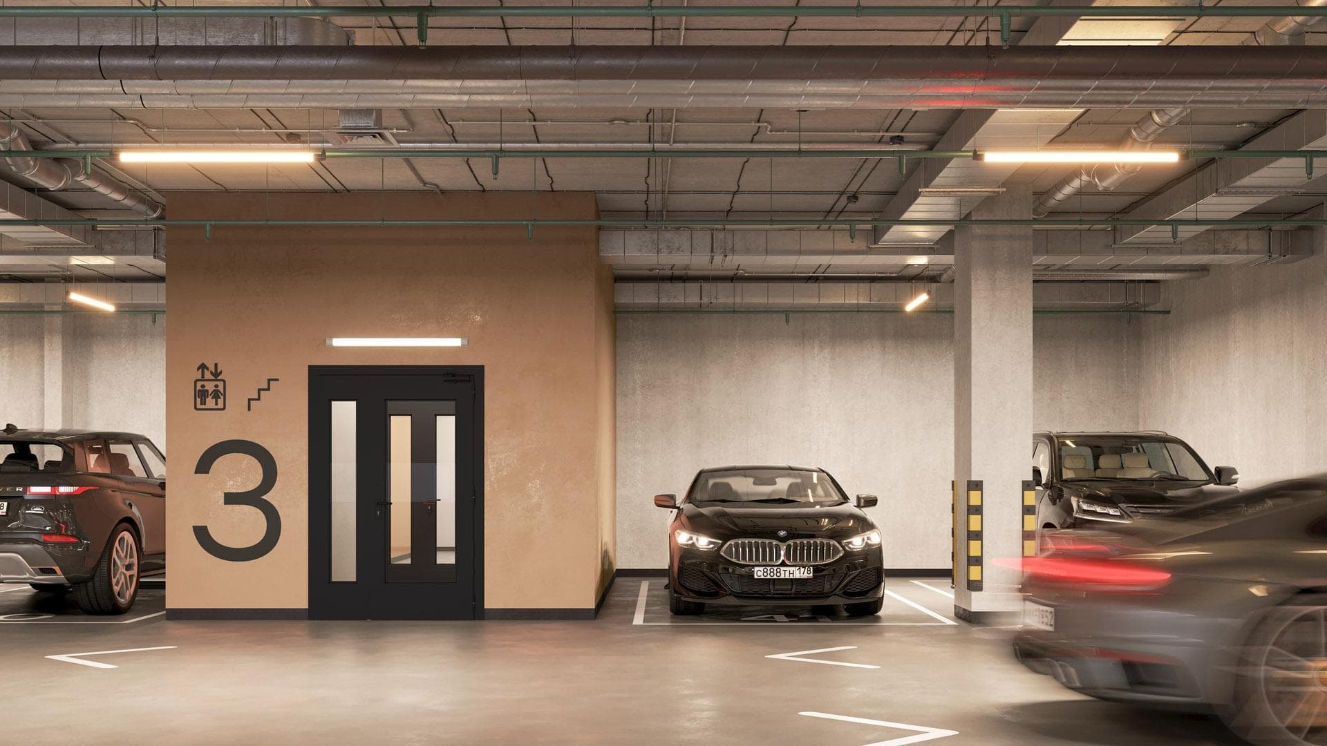 из любой секции. Дизайн паркинга выполнен в единой